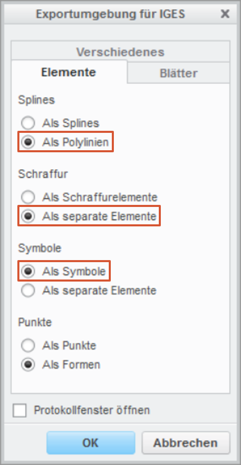 Dokumentation des Herstellers zum IGES-Export (ab Creo 5.0): Allgemeine Einführung: Nach IGES exportieren.