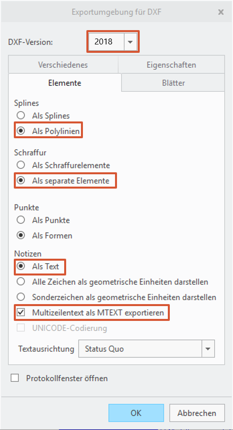 Allgemein: DXF-/DWG-Version DXF- und DWG-Dateien können bis einschließlich AutoCAD-Version 2023 geladen werden.