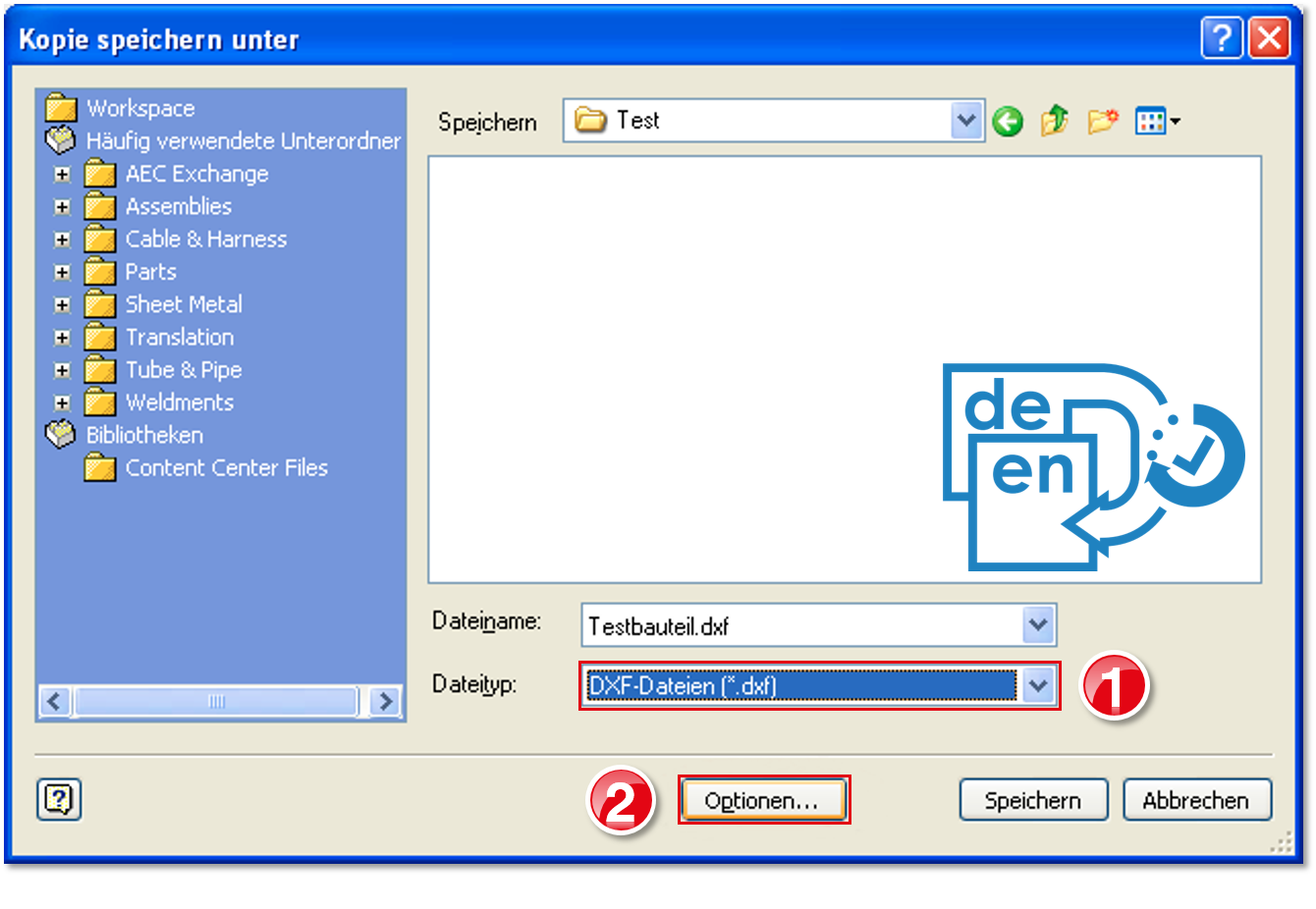 Described are export settings for the CAD system “Autodesk Inventor” from version 2010. With the recommended settings you ensure that the drawing file can be read by infra CONVERT in the best possible way. Export in IGES format is not supported by Inventor 2010.