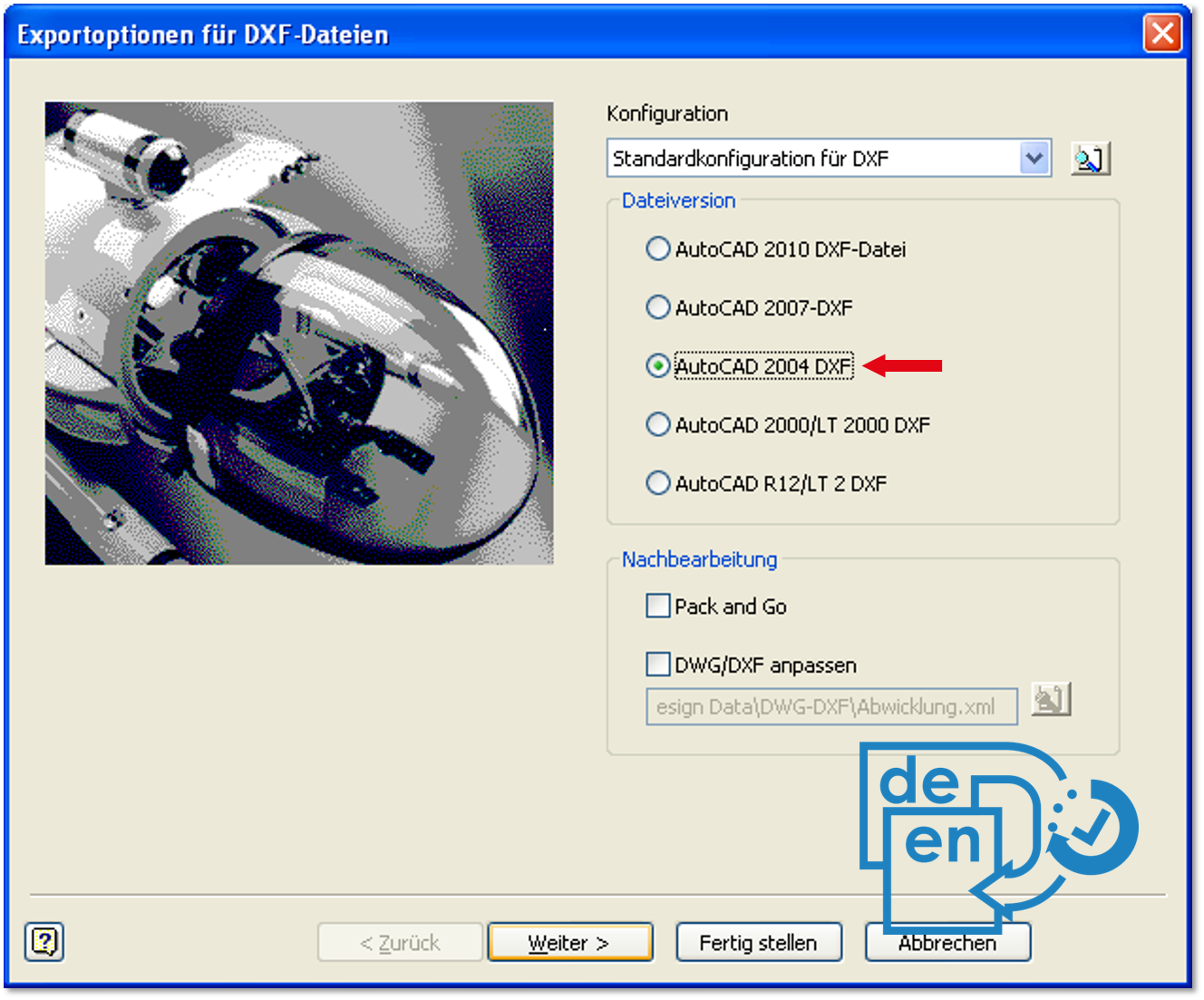The process for the DXF export can be applied analogously to the DWG export.