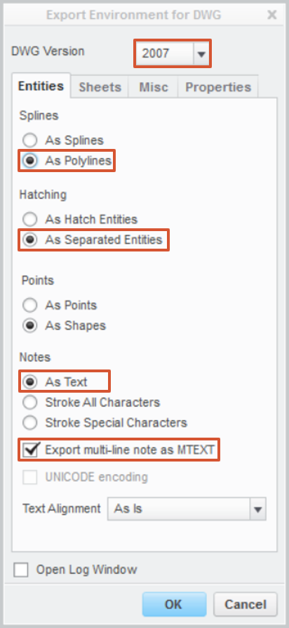 Documentation of the manufacturer for DXF/DWG export (Creo 5.0 and higher): About Exporting Drawings to DXF or DWG Files.