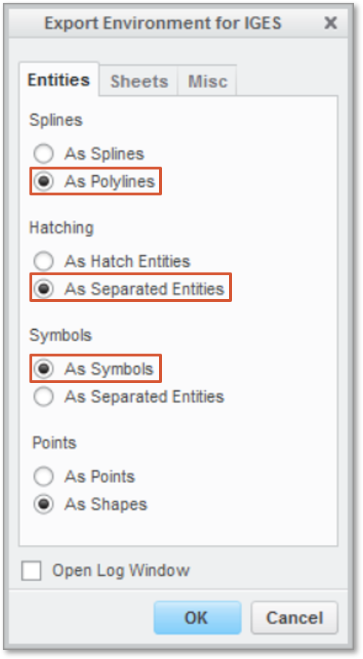 Documentation of the manufacturer for DXF/DWG export (from Creo 5.0): About Exporting to IGES.