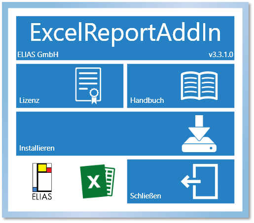 1 Installationsmanager starten Öffnen Sie die Datei „ExcelReportAddInSetup.exe“. Es öffnet sich das Dialogfenster des Installationsmanagers: