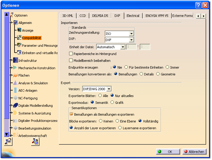 Diese Anleitung beschreibt den Export von Zeichnungsdateien im DWG-, DXF- und IGES-Format (→Zeichnungsdatenformat) aus dem CAD-System „CATIA V5 R19“ heraus. Mit den empfohlenen Einstellungen stellen Sie sicher, dass die Zeichnungsdatei von infra CONVERT bestmöglich gelesen werden kann.