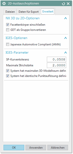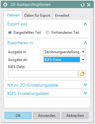 Diese Anleitung beschreibt den Export von Zeichnungsdateien im DWG-, DXF- und IGES-Format (→Zeichnungsdatenformat) aus dem CAD-System NX 10 heraus. Mit den empfohlenen Einstellungen stellen Sie sicher, dass die Zeichnungsdatei von infra CONVERT bestmöglich gelesen werden kann.