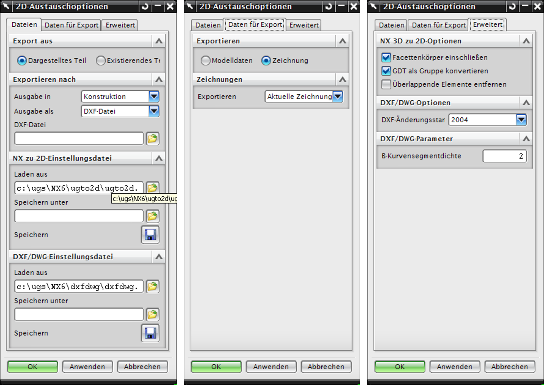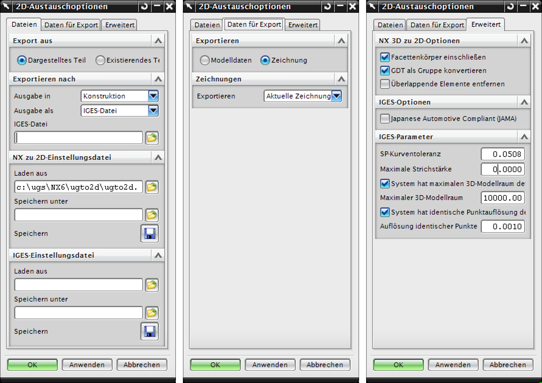 Diese Anleitung beschreibt den Export von Zeichnungsdateien im DWG-, DXF- und IGES-Format (→Zeichnungsdatenformat) aus dem CAD-System NX 6 heraus. Mit den empfohlenen Einstellungen stellen Sie sicher, dass die Zeichnungsdatei von infra CONVERT bestmöglich gelesen werden kann.