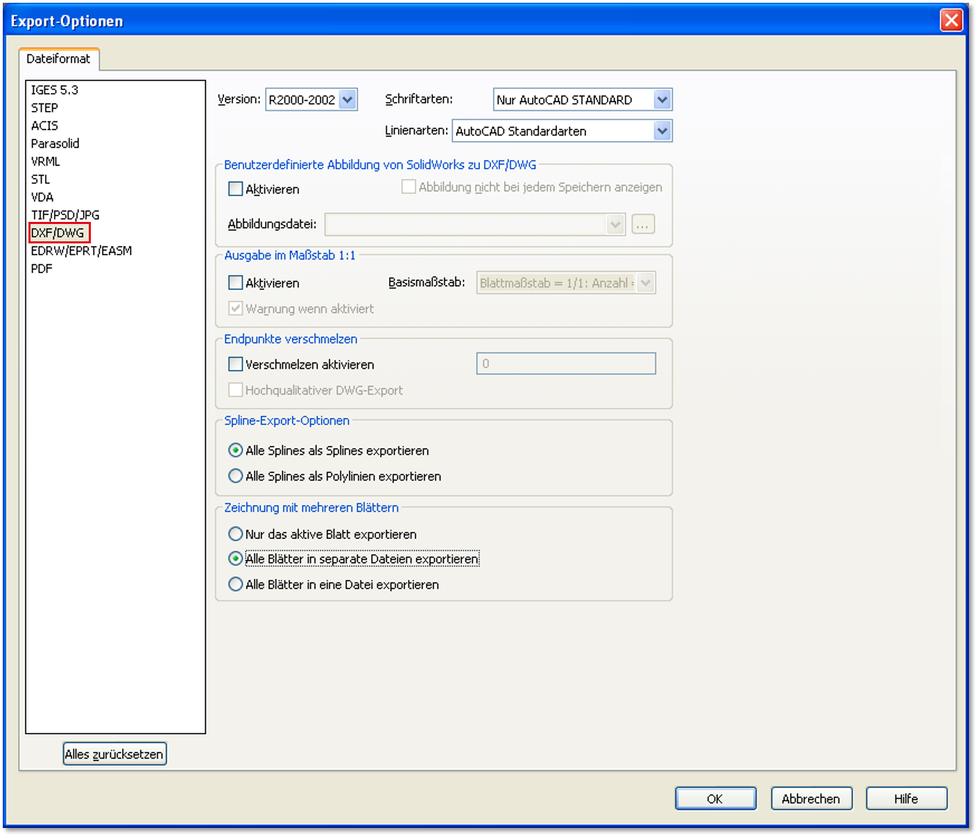 Zeichnungsexport aus dem CAD-System > Dassault Systèmes > Ab Version SolidWorks 2017