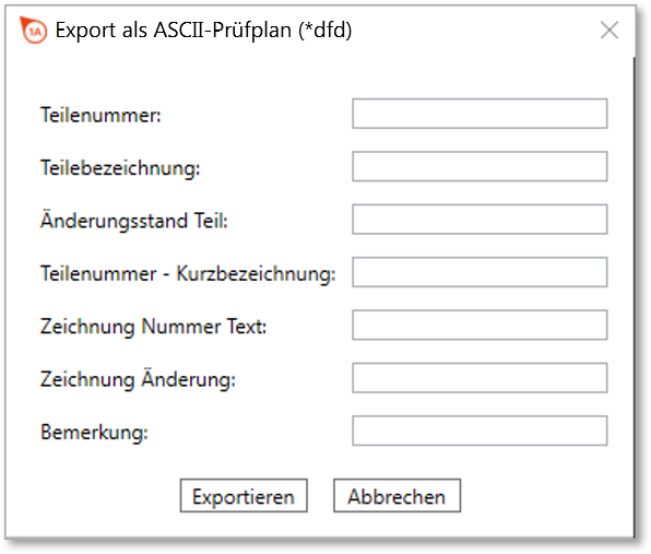 1) Es öffnet sich das Dialogfenster Exportieren im ASCII-Transferformat: