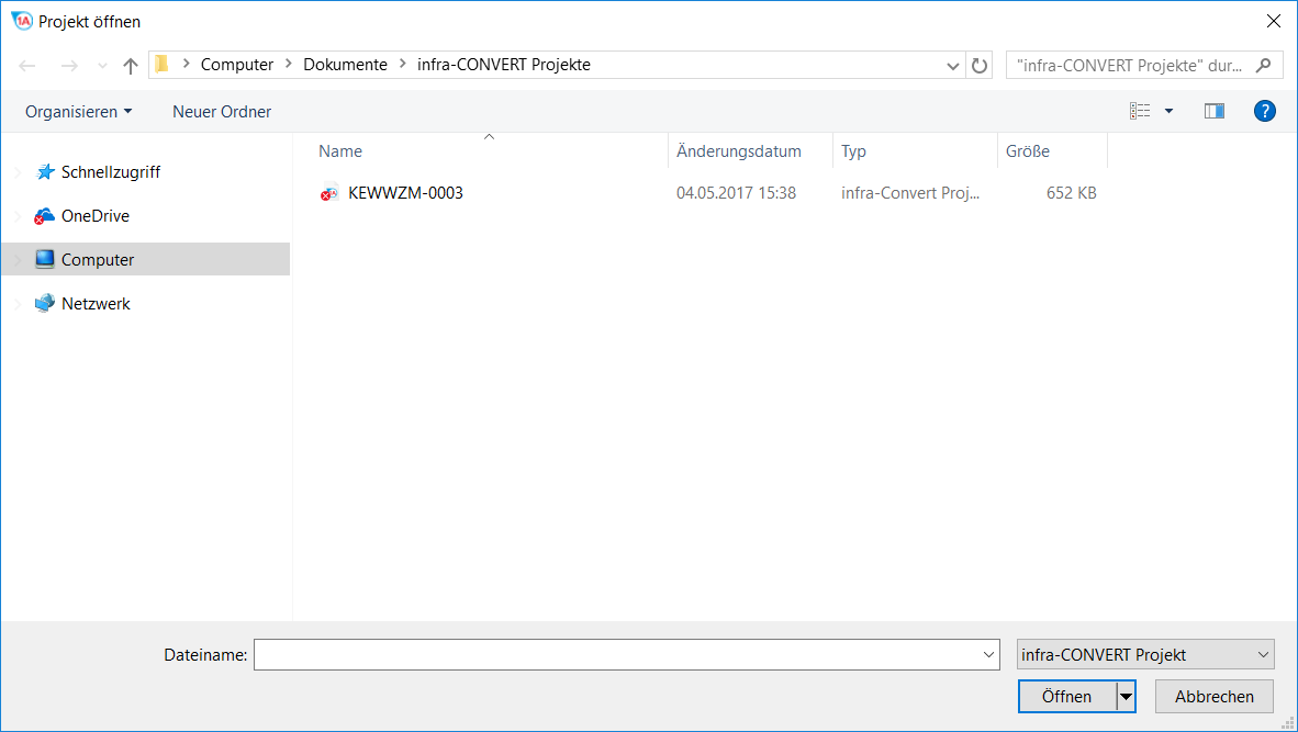 Es öffnet sich das Dialogfenster „Projekt öffnen“: