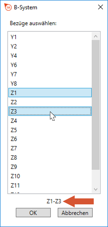 2) Wählen Sie die betreffenden Bezugskennzeichen in der richtigen Reihenfolge durch einfache Linksklicks aus: