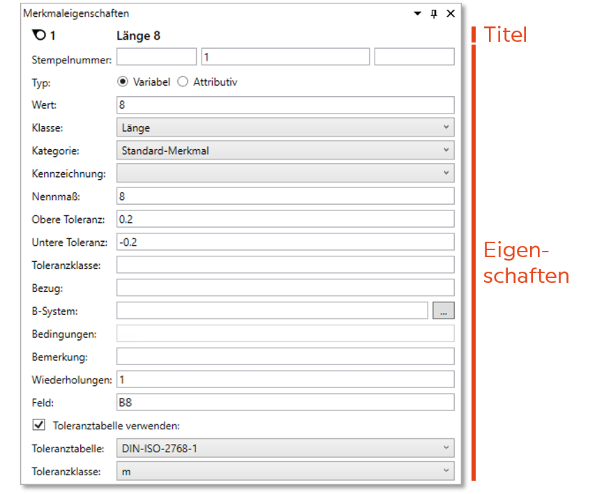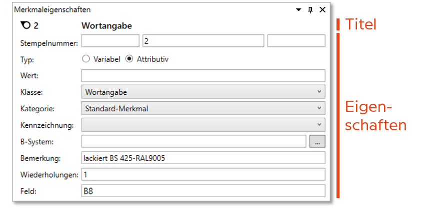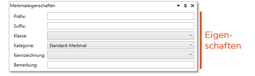 Im Funktionsfenster „Merkmaleigenschaften“ können Sie die die Eigenschaften von Merkmalen einsehen und ändern.