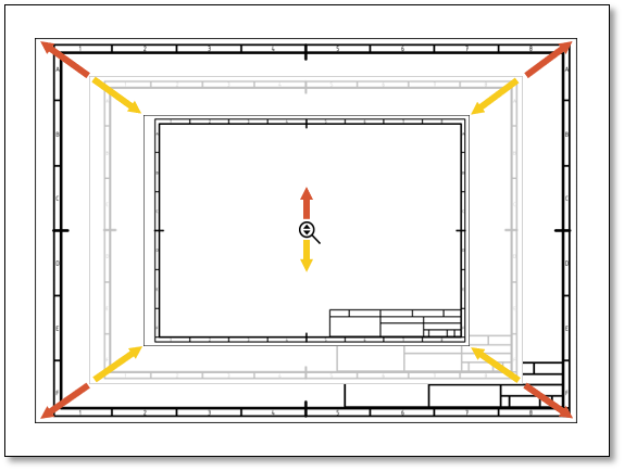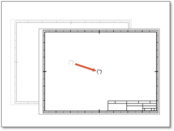 Verschiebt das Zeichnungsblatt in der Ebene. In die Ansicht klicken, gedrückt halten und bewegen.