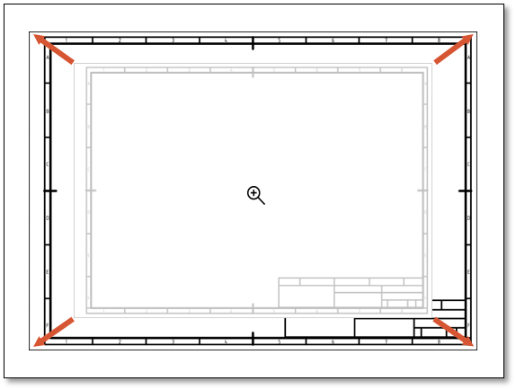 Passt den Bereich in das Zeichnungsfenster ein, der mit einem Rahmen markiert wurde. Eine Ecke des Ausschnitts anklicken, gedrückt halten und den Rahmen aufziehen, anschließend loslassen.