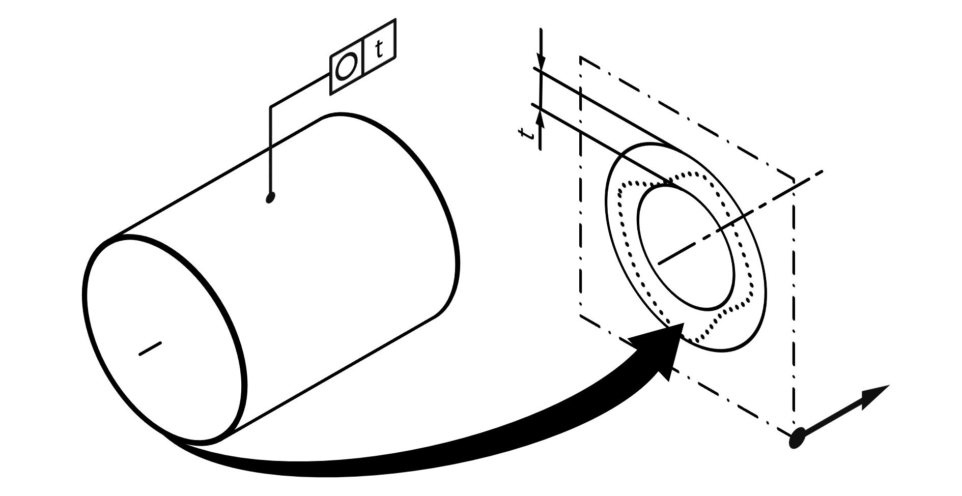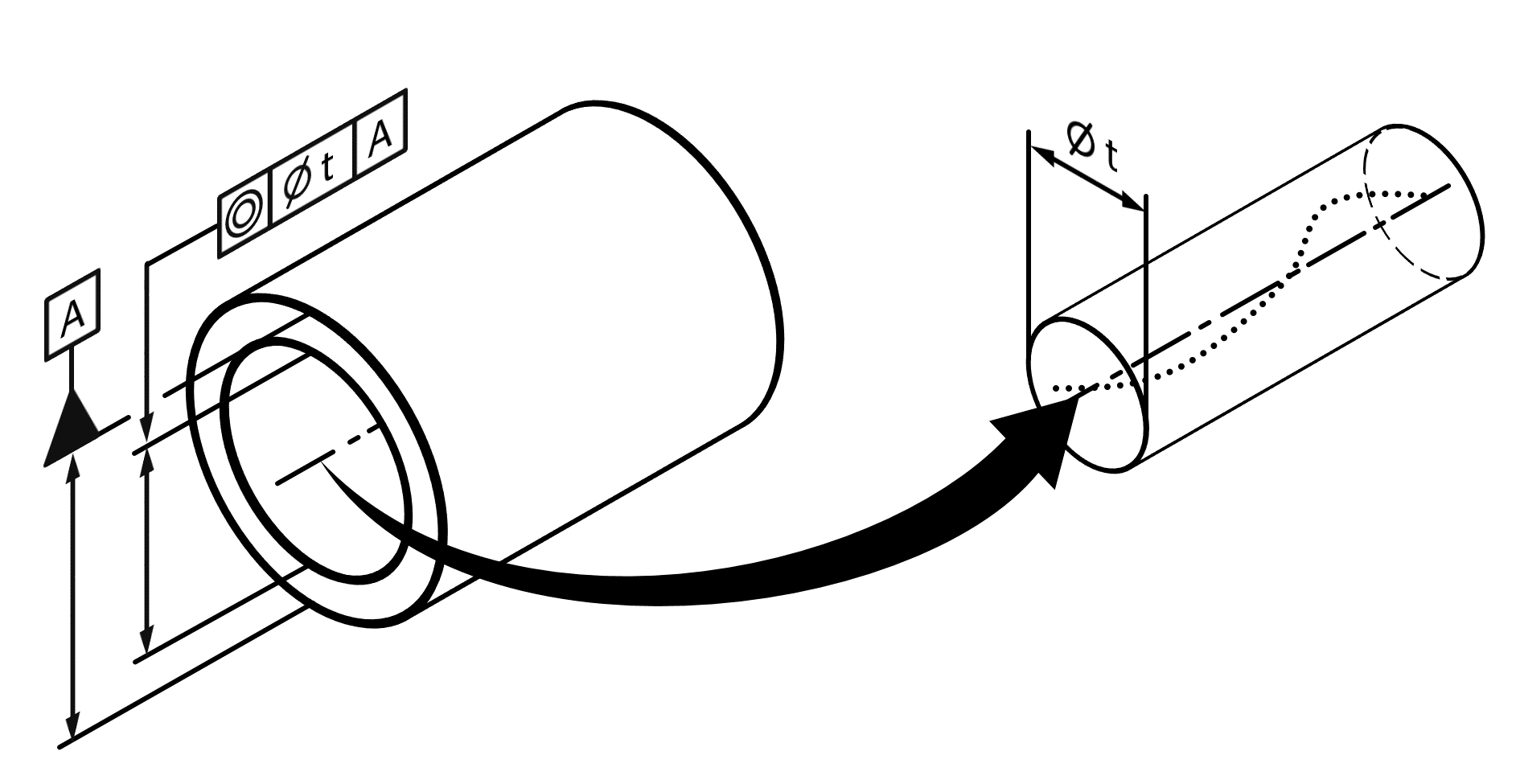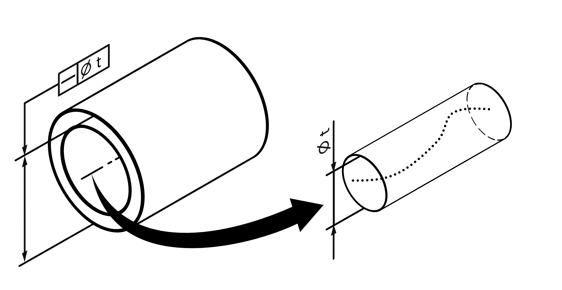 | Zylindrizität | | Zulässige Formabweichung einer Zylinderfläche von einem Referenzzylinder. Standardmaßeinheit Millimeter (mm) Beispiel: | • DIN EN ISO 1101:2014 • DIN EN ISO 12180-1:2011 | 10 | 103 |