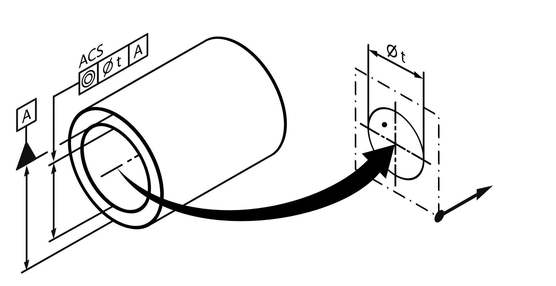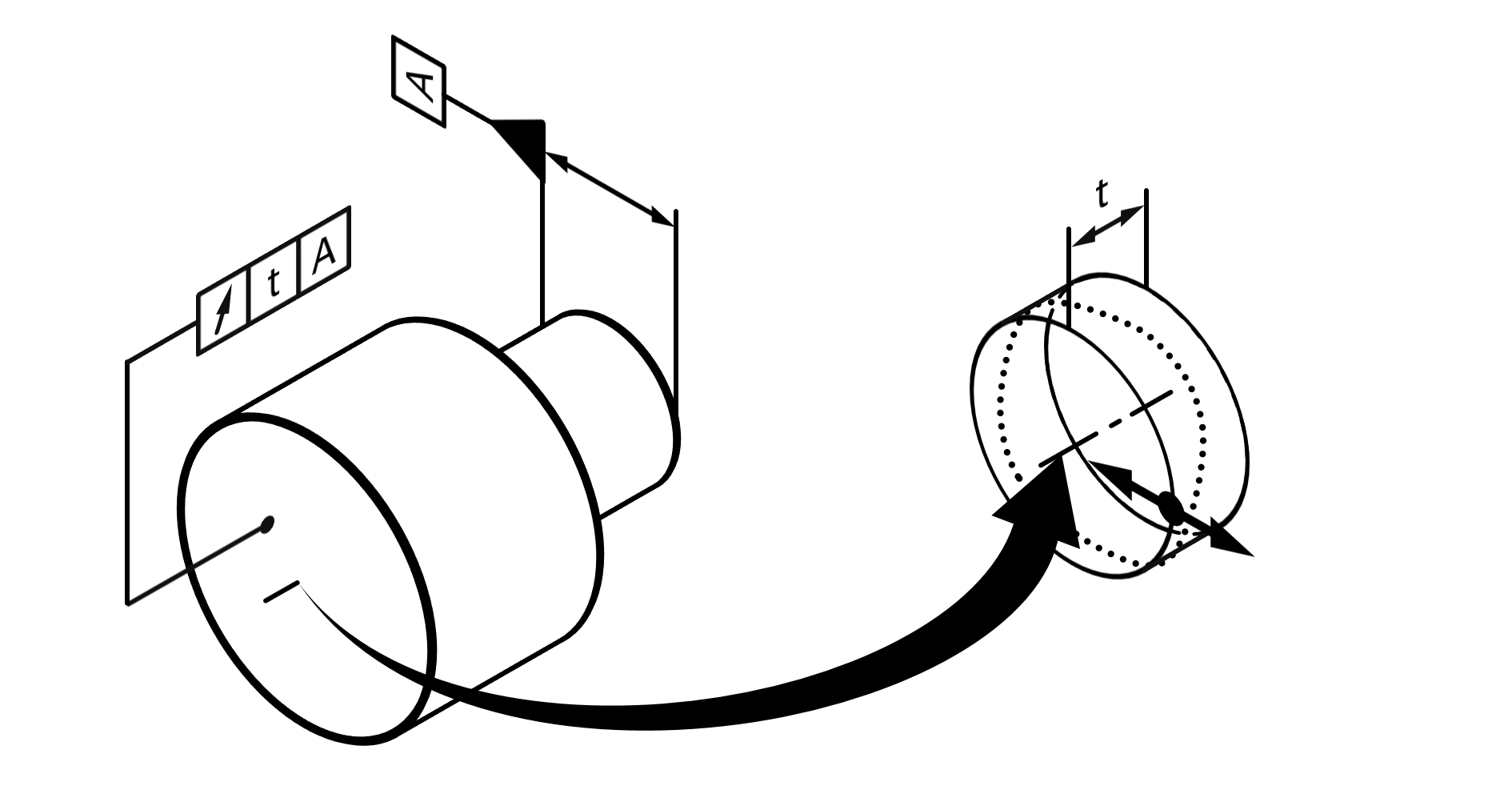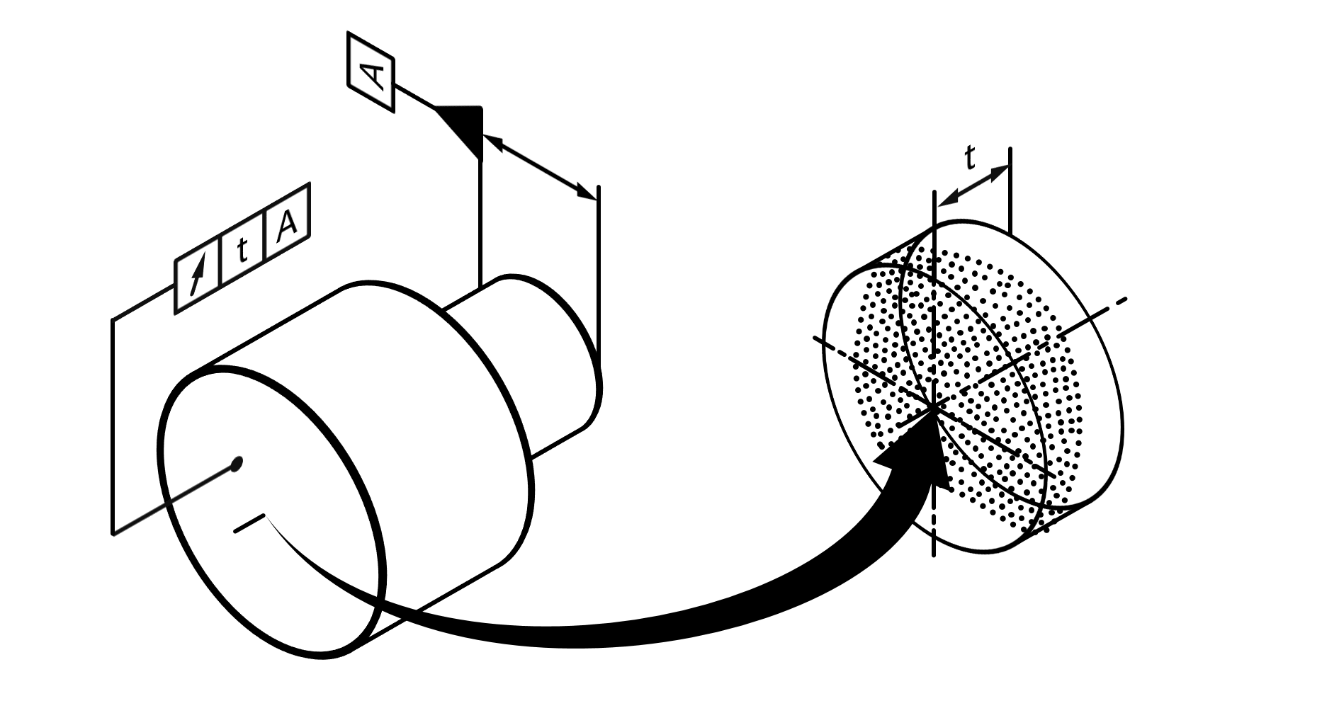 | Zylindrizität | | Zulässige Formabweichung einer Zylinderfläche von einem Referenzzylinder. Standardmaßeinheit Millimeter (mm) Beispiel: | • DIN EN ISO 1101:2014 • DIN EN ISO 12180-1:2011 | 10 | 103 |