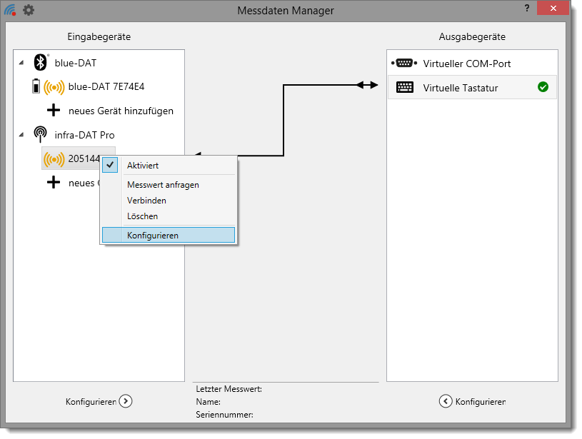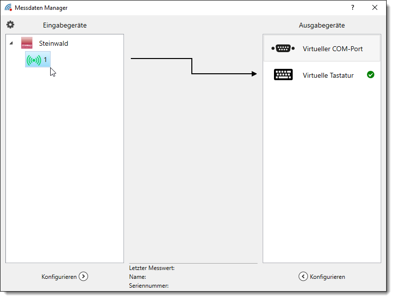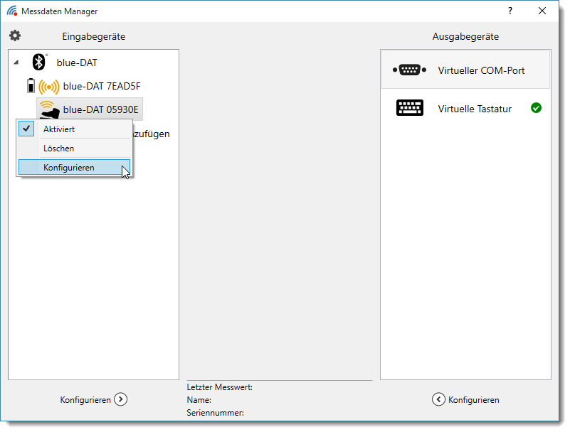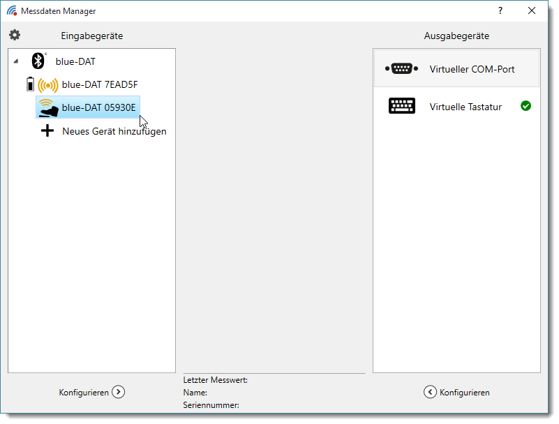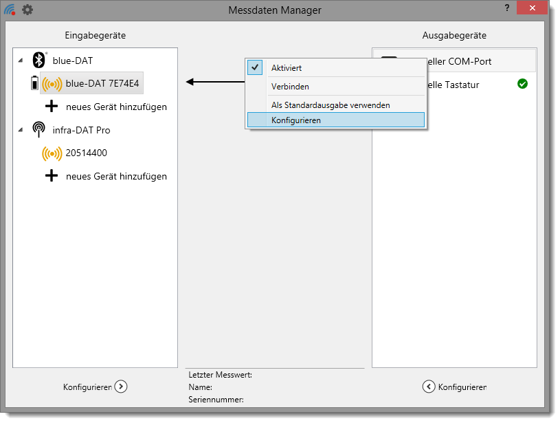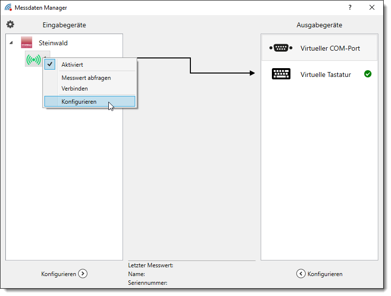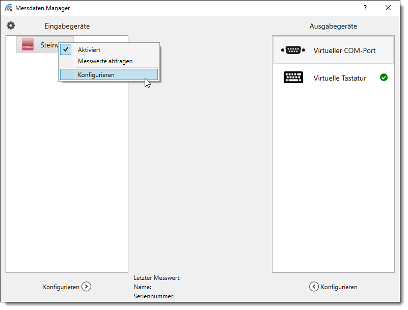 Um das Messmittel zu konfigurieren, wählen Sie dieses per Maus aus der Liste aus.