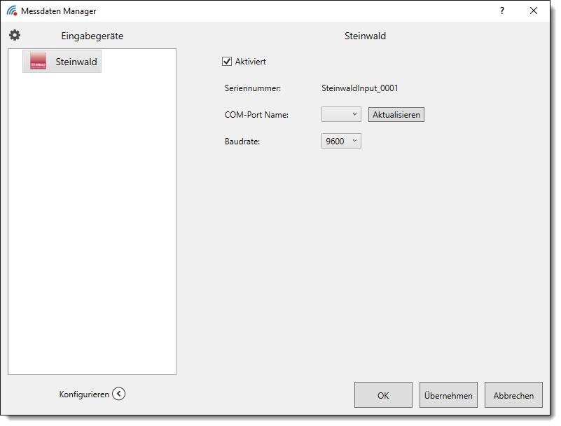 Im Folgenden wird beschrieben, wie Sie eine Steinwald-Interface-Box als Eingabegerät konfigurieren.