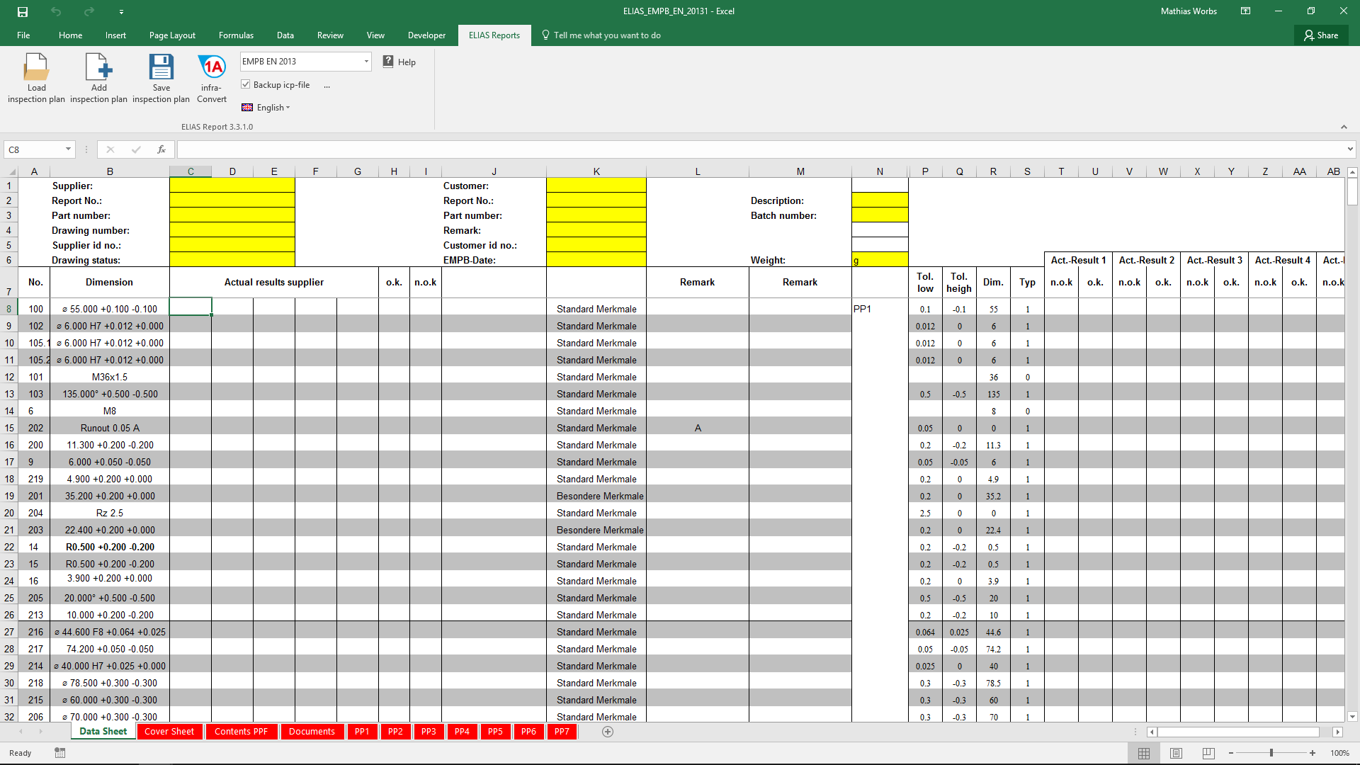 After you created the inspection plan, it's possible to collect the measurement data inside of Excel, without the Report Add-In or infra-CONVERT.