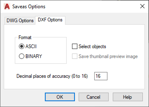 Described are export settings for the CAD system “AutoCAD” from version 2021. With the recommended settings you ensure that the drawing file can be read by infra CONVERT in the best possible way. Export in IGES format is not supported by “AutoCAD 2021”.