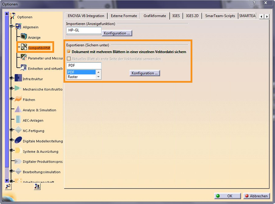 Described are export settings for the CAD system “CATIA V5” from version R24. With the recommended settings you ensure that the drawing file can be read by infra CONVERT in the best possible way.