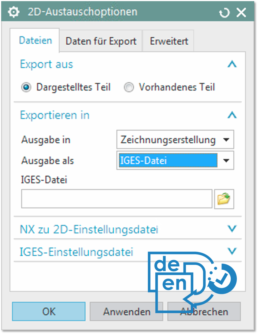 This manual describes how to export drawing files in DWG, DXF and IGES formats (→Drawing data format) from the NX 10 CAD system. The recommended settings ensure that the drawing file can be read by infra CONVERT in the best possible way.