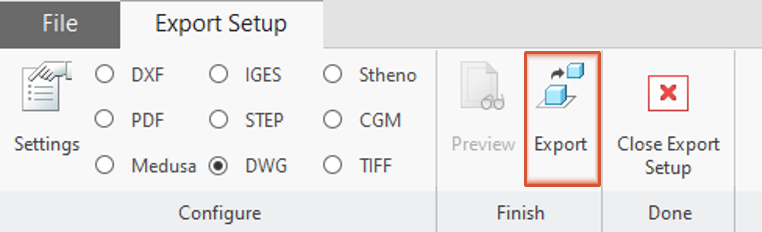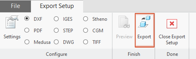 The “Export setup” ribbon opens.