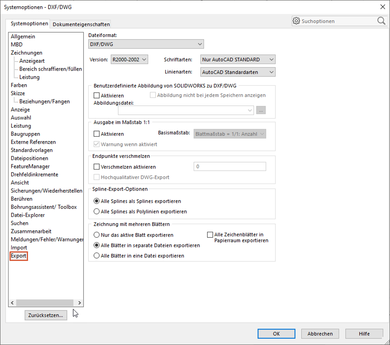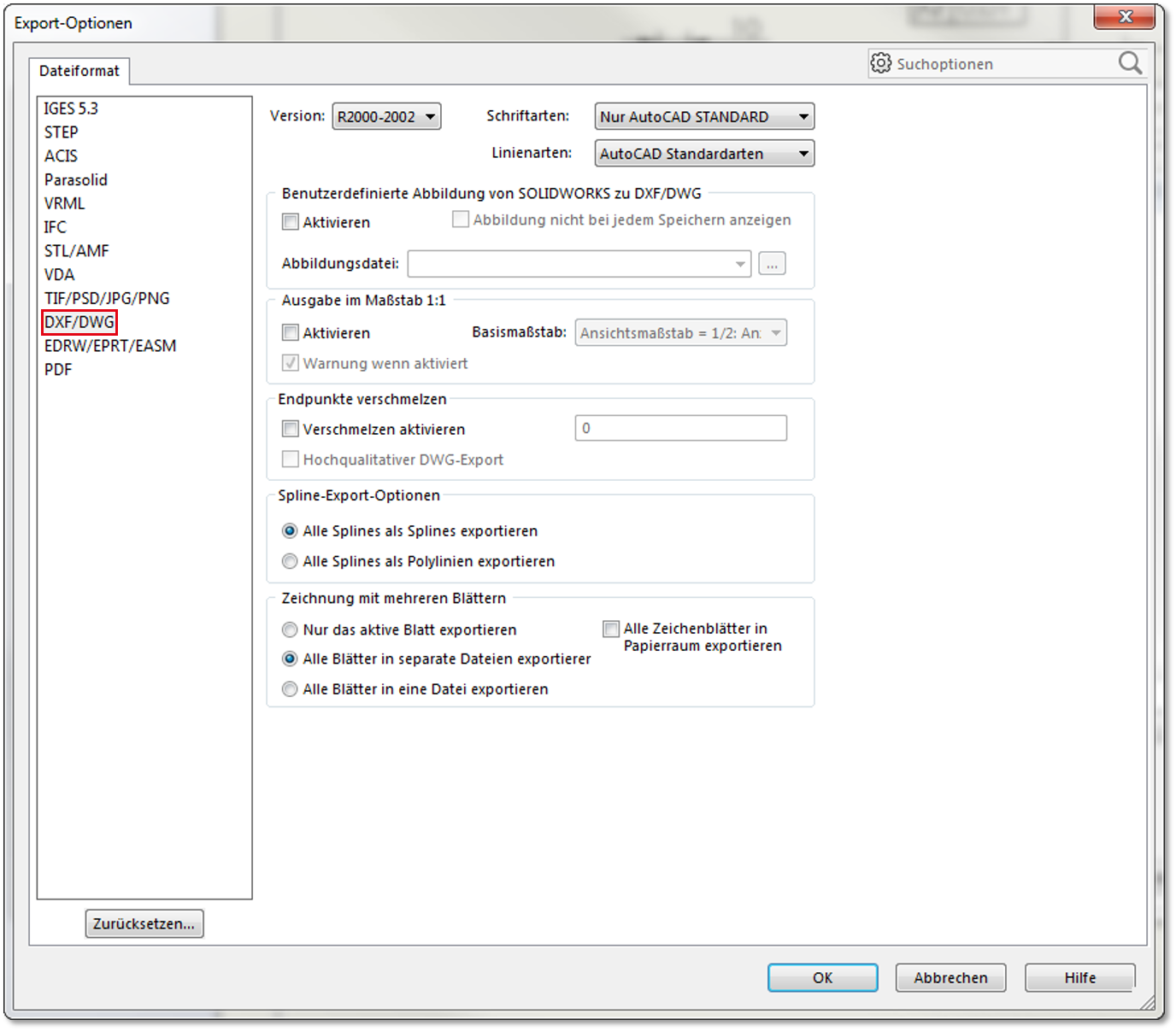 Dokumentation des Herstellers zum DXF-/DWG-Export: Dassault Systems DXF/DWG export.