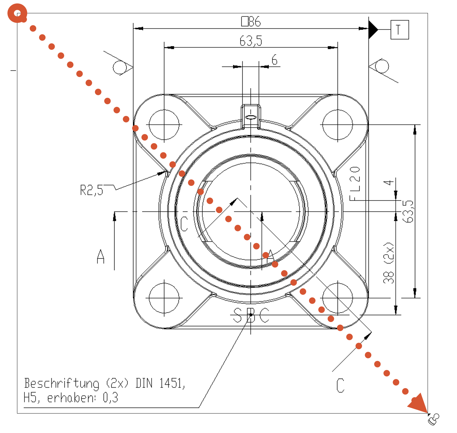 | 4 | Stempeln | Für das eigentliche Stempeln stehen Ihnen drei alternative Teilfunktionen zur Verfügung: 4a) Ein Merkmal einzeln stempeln. 4b) Alle Merkmale in einem Bereich automatisch erkennen und stempeln lassen. 4c) Einen Zeichnungseintrag, welcher nicht als zusammenhängend erkannt wird, als ein Merkmal stempeln. |