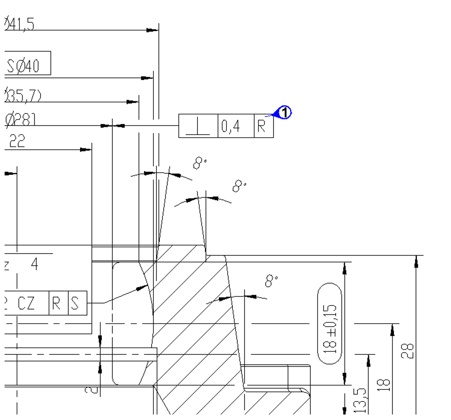 | 4a | Einzelnes Merkmal stempeln | Bewegen Sie den Mauszeiger ( | Im Beispiel haben wir uns für das Längenmaß 80 in der Vorderansicht entschieden. Nach dem Stempeln hat es einen VDA-Stempel mit der Nummer “1” erhalten und erscheint als Eintrag in der Merkmalsübersicht: |