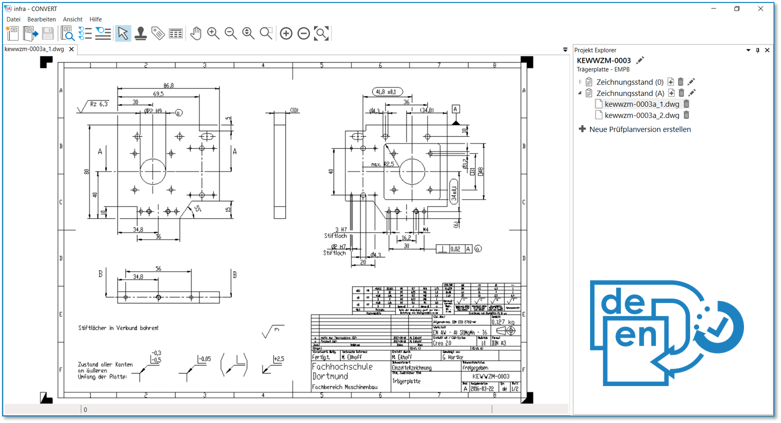 | 1 | Zeichnungsblatt öffnen | Öffnen Sie das Zeichnungsblatt, welches Sie stempeln möchten. | Das Zeichnungsblatt wird im Zeichnungsfenster angezeigt: |