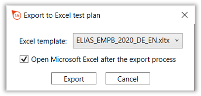 With this function, you can export a test plan version as a file in a data exchange format (JSONV1, ASCII transfer format ("*.dfd"), CSV, descriptions to the data formats under “Administrator's manual infra CONVERT > Export”) or write the contents of the test plan directly to a Microsoft Excel file you have configured.