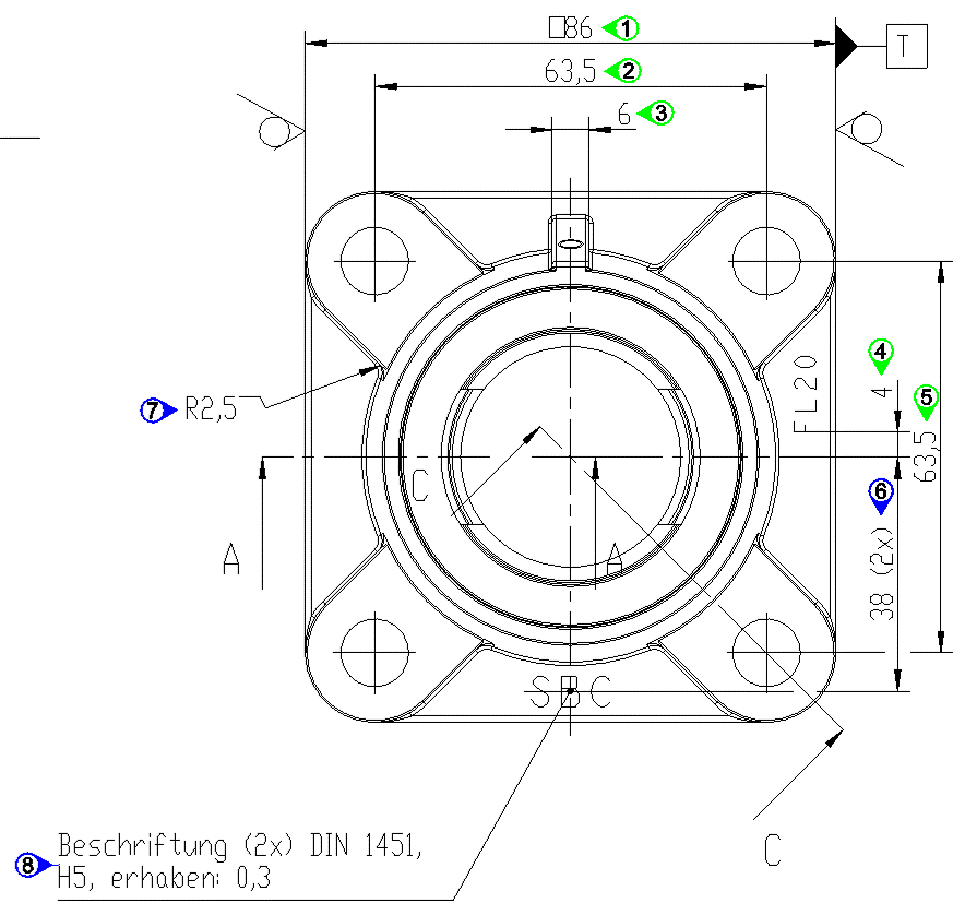 The stamp symbol for tagged characteristics will be displayed in the colour assigned to the tag (see Customization). In the following example, see characters 1 to 5: