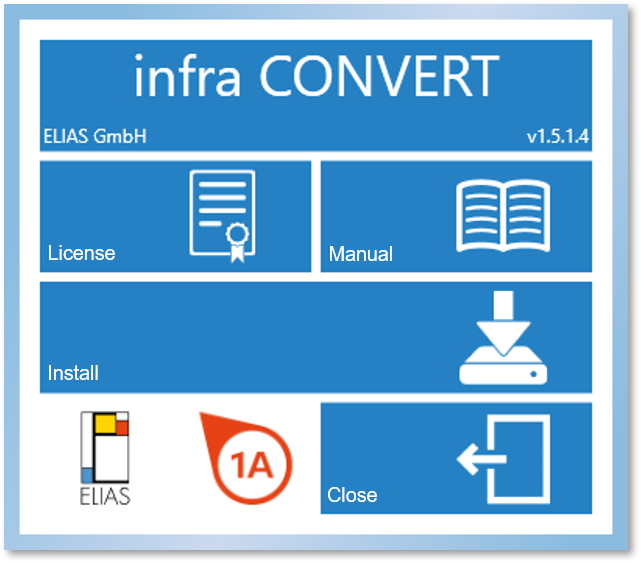 6 Installationsmanager schließen Schließen Sie den Installationsmanager durch Klicken auf Schließen. Sie können die Software infra CONVERT nun verwenden. Sie finden einen Verweis auf die Startdatei (welche im Installationsverzeichnis liegt) z. B. im Startmenü als Eintrag in der Programmliste unter ELIAS GmbH (vorbehaltlich der Einstellungen an Ihrem Betriebssystem).