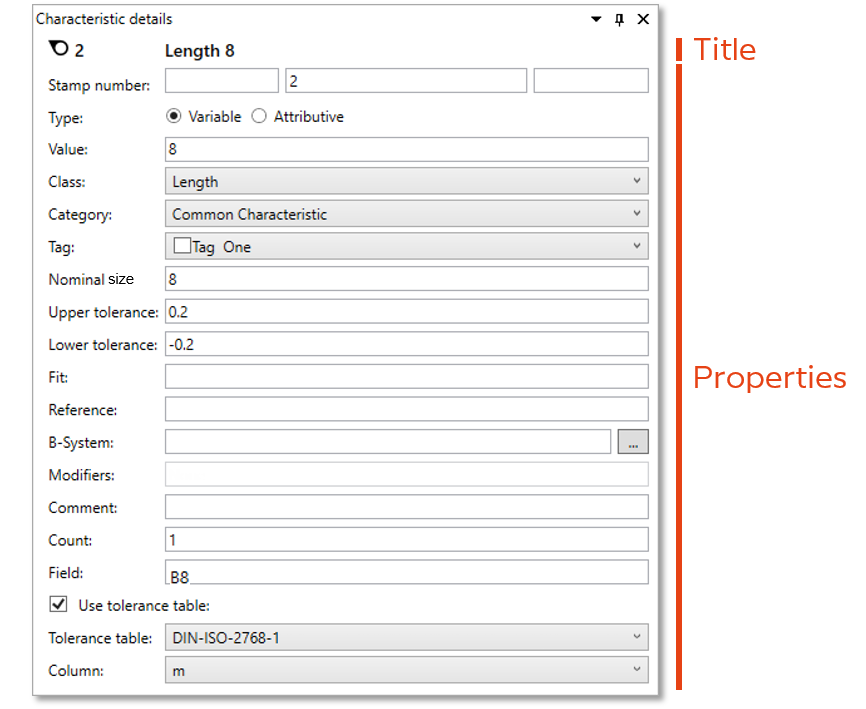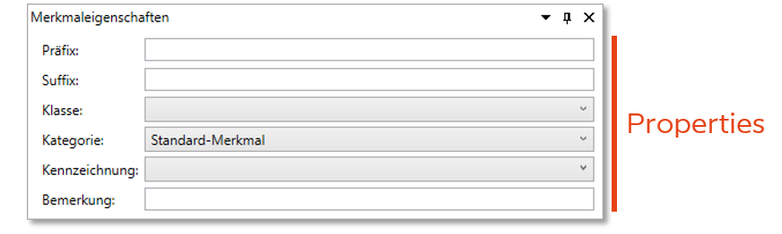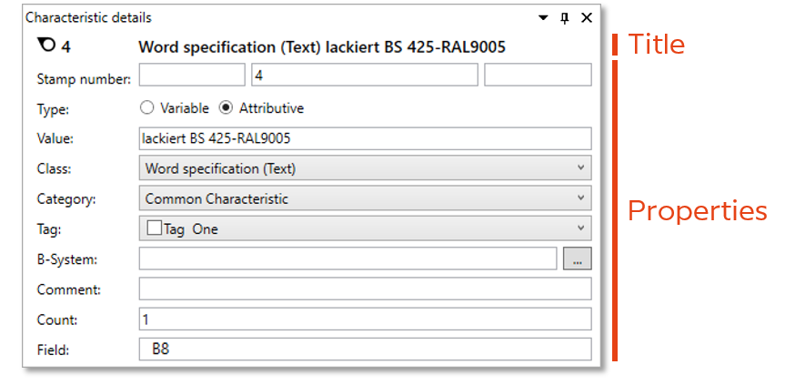 You can view and edit the properties of characteristics in the “Characteristic properties” function window.