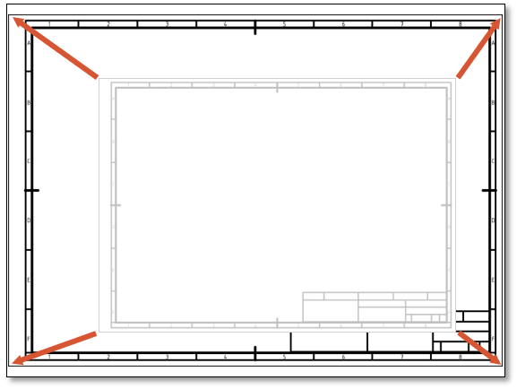 Enlarges a framed area to fit the Drawings window. Click on a corner of the selection, keep the key depressed and draw a frame, then release the key.